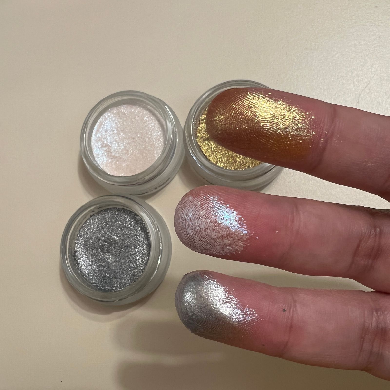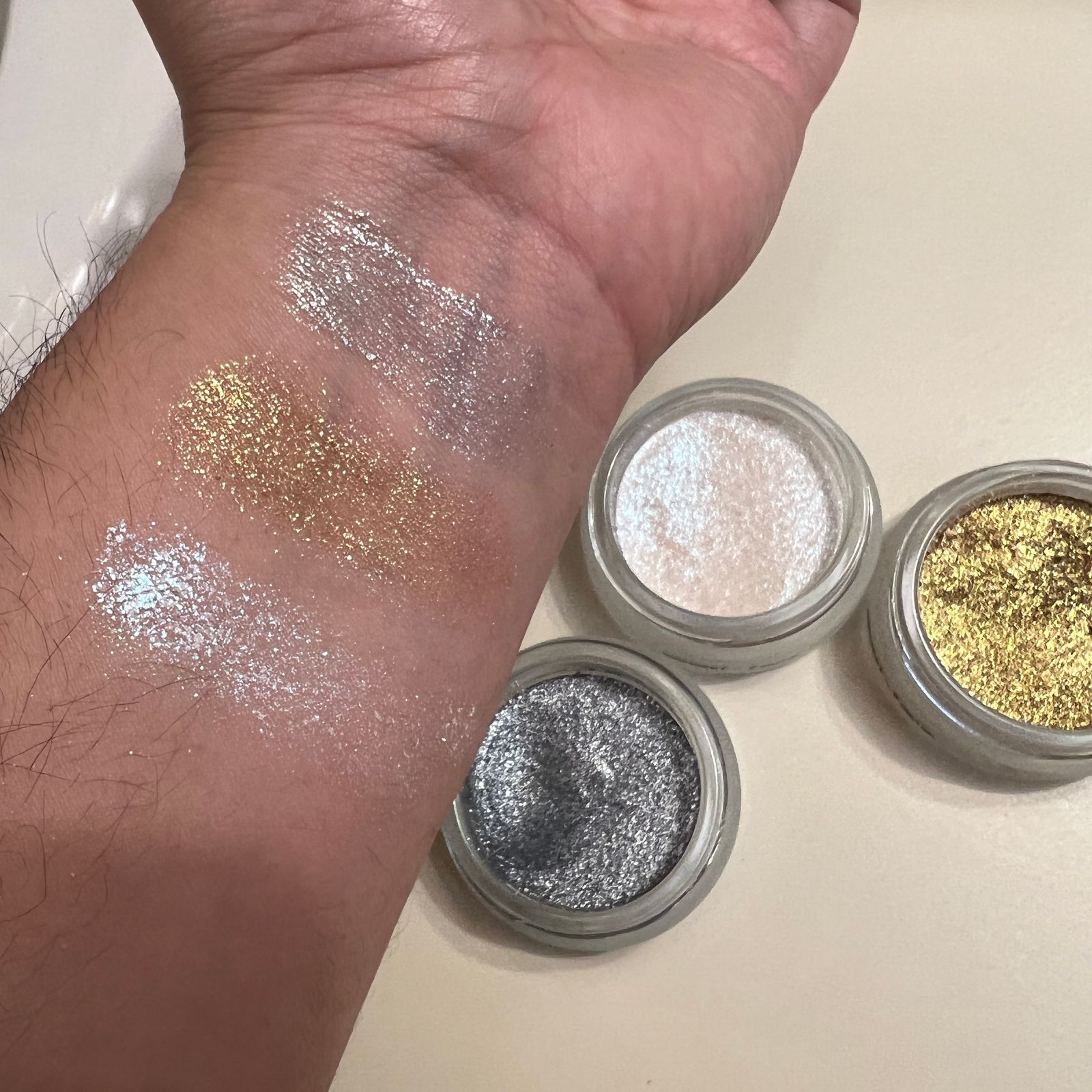 THIS IS: Multifunctional glitter gel duos with a springy, cloudlike texture that beams light onto the body, eyes or face. Available in 3 shades—glittering gold, white and silver—and only sold in sets of 2 to save you 30%.